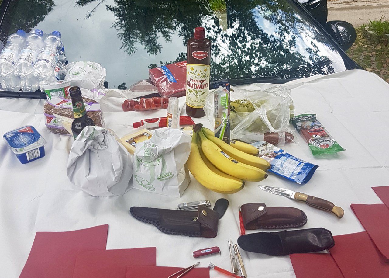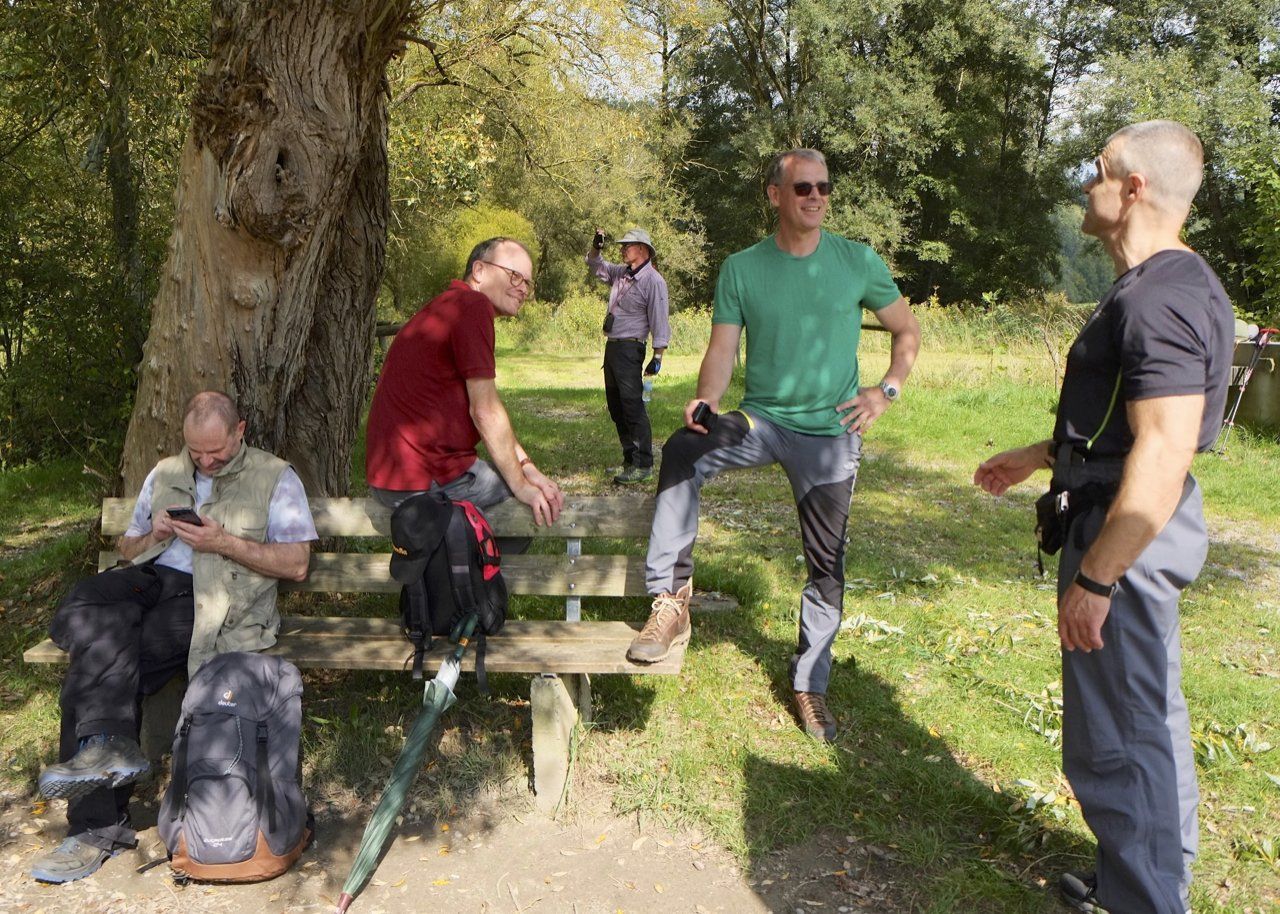 Rüsten um 9 Uhr, nach dem Frühstück geht’s los über Stock und Stein, durch den Wald immer an der schönen Iller entlang. Rast mit Kost von der Motorhaube, besorgt von O’ Hara und Wiedehopf – bis zum „Blauen Wunder“, wo wir den Fluss überqueren. Abends Ekstase im „Gromerhof“.