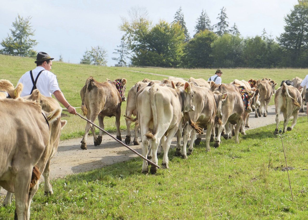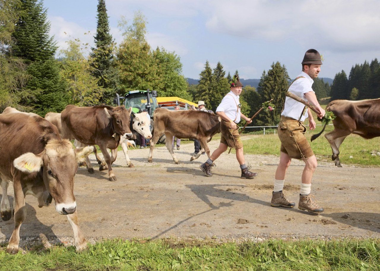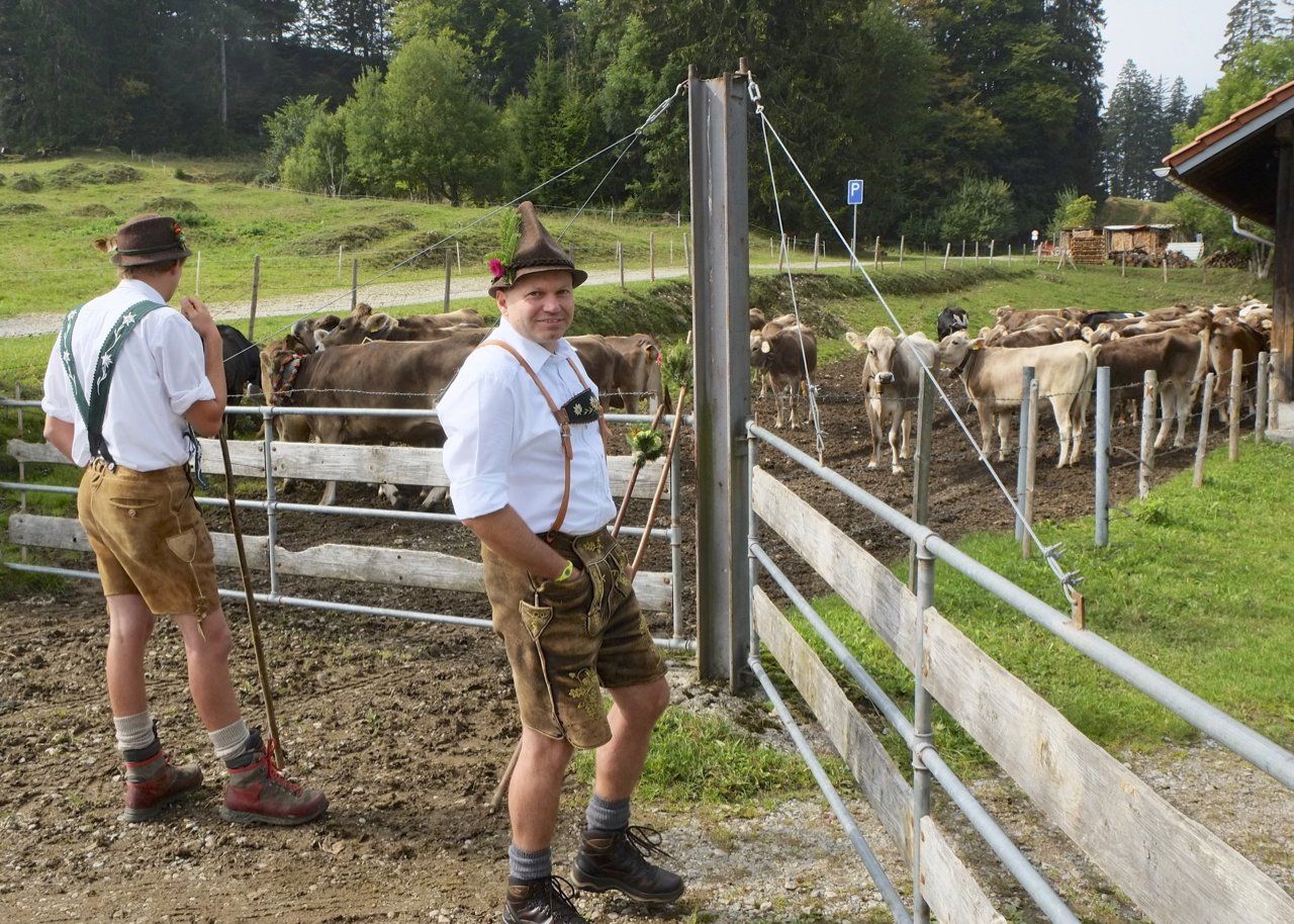Alle Mann aufstehen! Dann ab zur Wenger-Egg-Alpe, wo es so gut wie nix zu essen gibt. Dafür eine Herde voller Kühe: Almabtrieb, wie wunderbar! Später „Chill-out on the Iller“ – im Kahn unterwegs mit dem Fischer-Sepp. Am Abend Dinner bei einer schrulligen Ulla. „Haid Jörger, bitte kommen!“