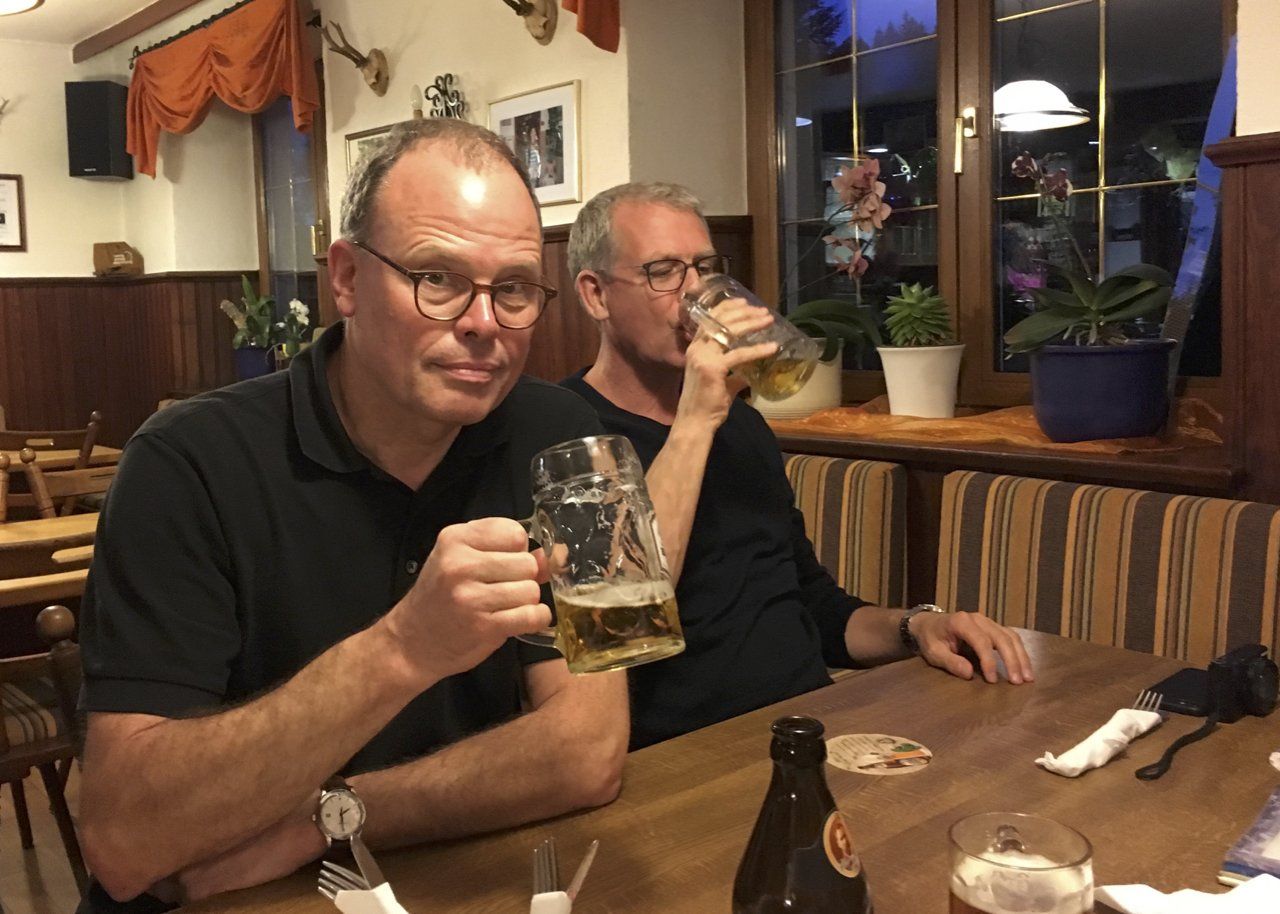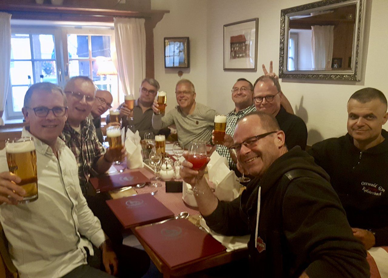 Gegen 17 Uhr treffen wir in Kronburg ein: sehr gediegenes Ambiente im Gästehaus. Statt Schloss-Besichtigung gibt’s einen Fußmarsch in Richtung Wagsberg, danach Einrücken in den Gasthof „Zur Krone“. Kein Besäufnis, aber ein Abend voll aufrichtiger Wiedersehensfreude.
