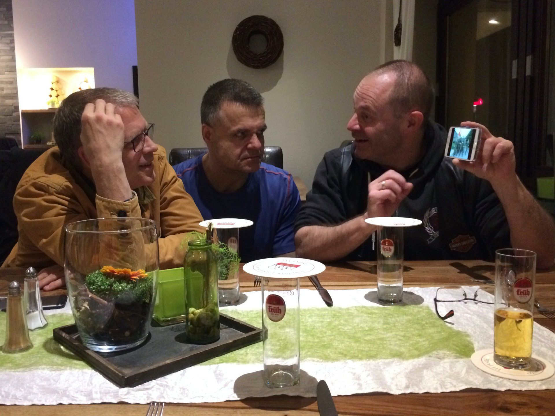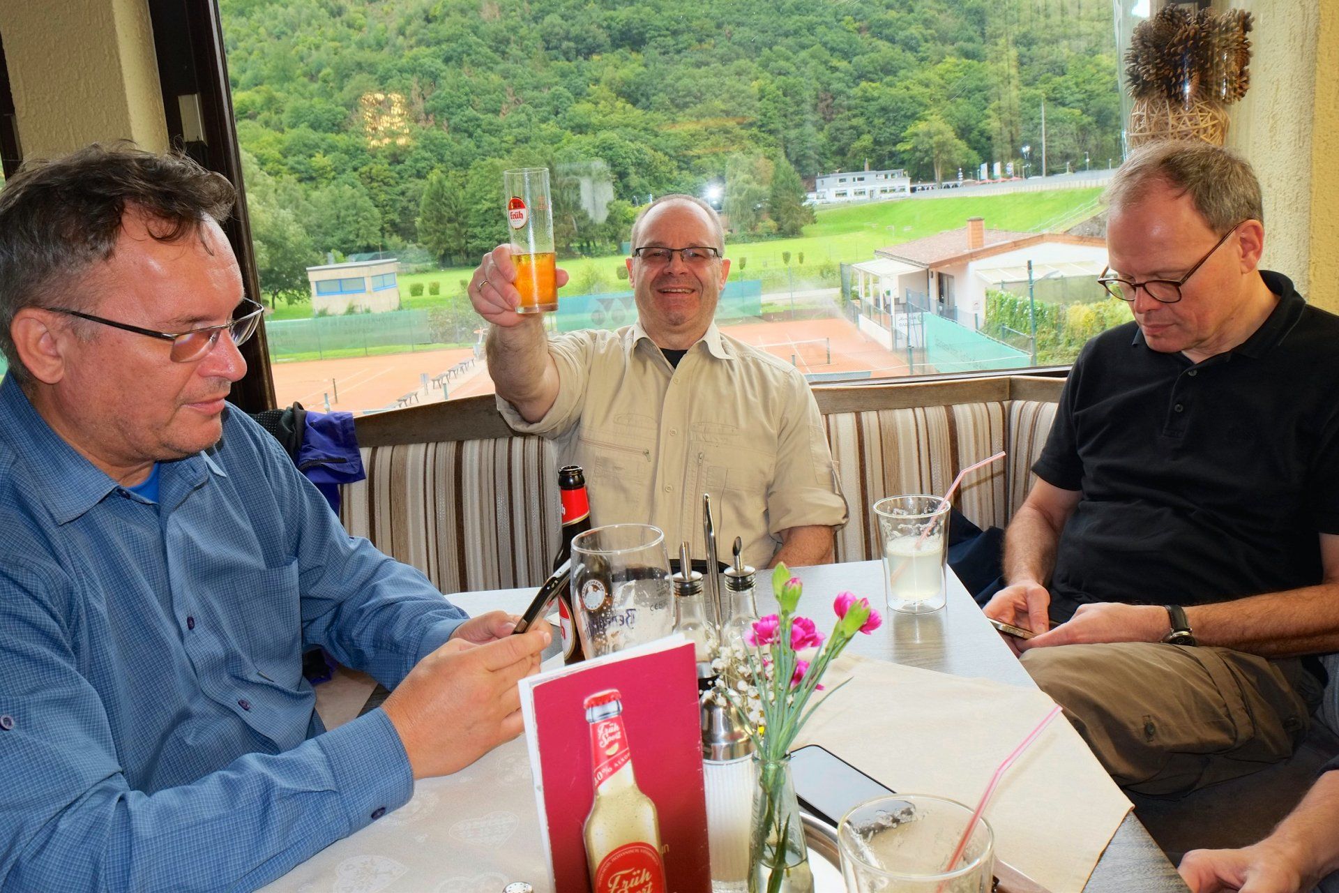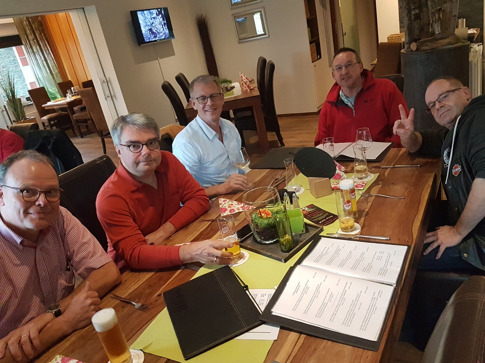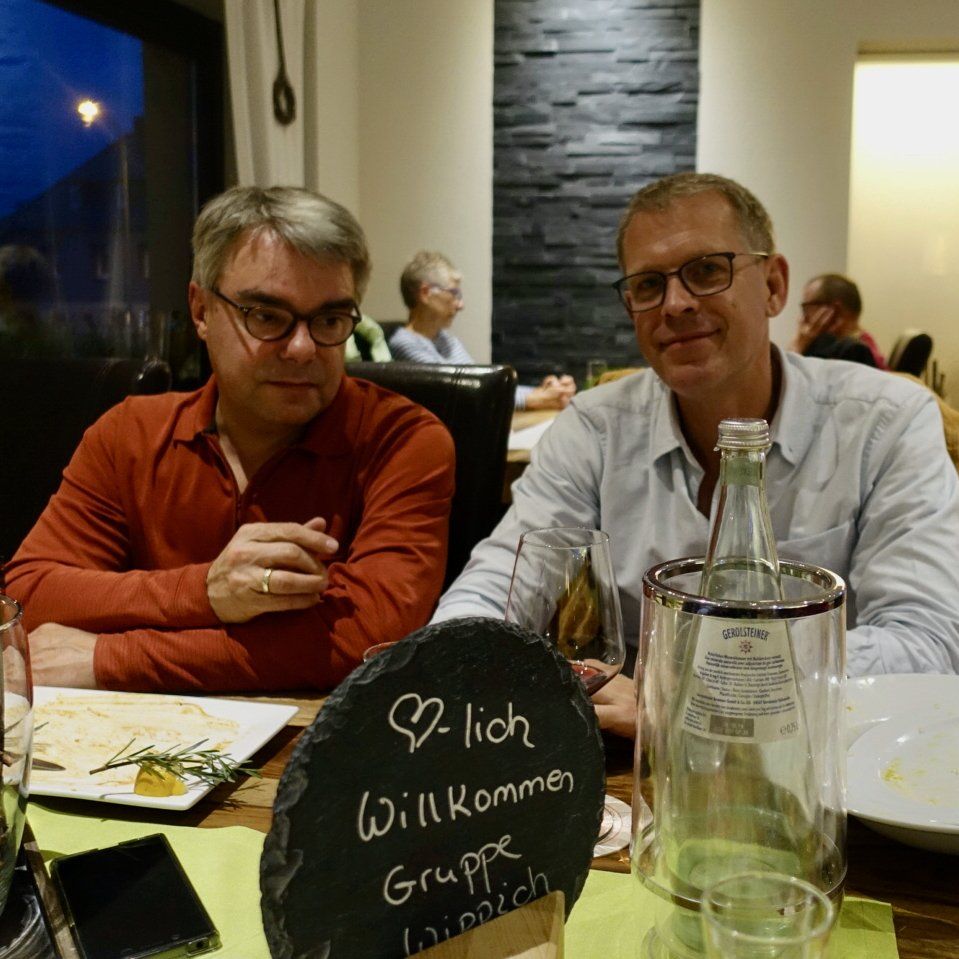 Café Flink! Nach der Rückkehr (keine Verluste!) gab's Gelegenheit für ein tourminatorgerechtes Schläfchen. Abends fröhliche Runde im Hotel Haus Seeblick in Schmidt.