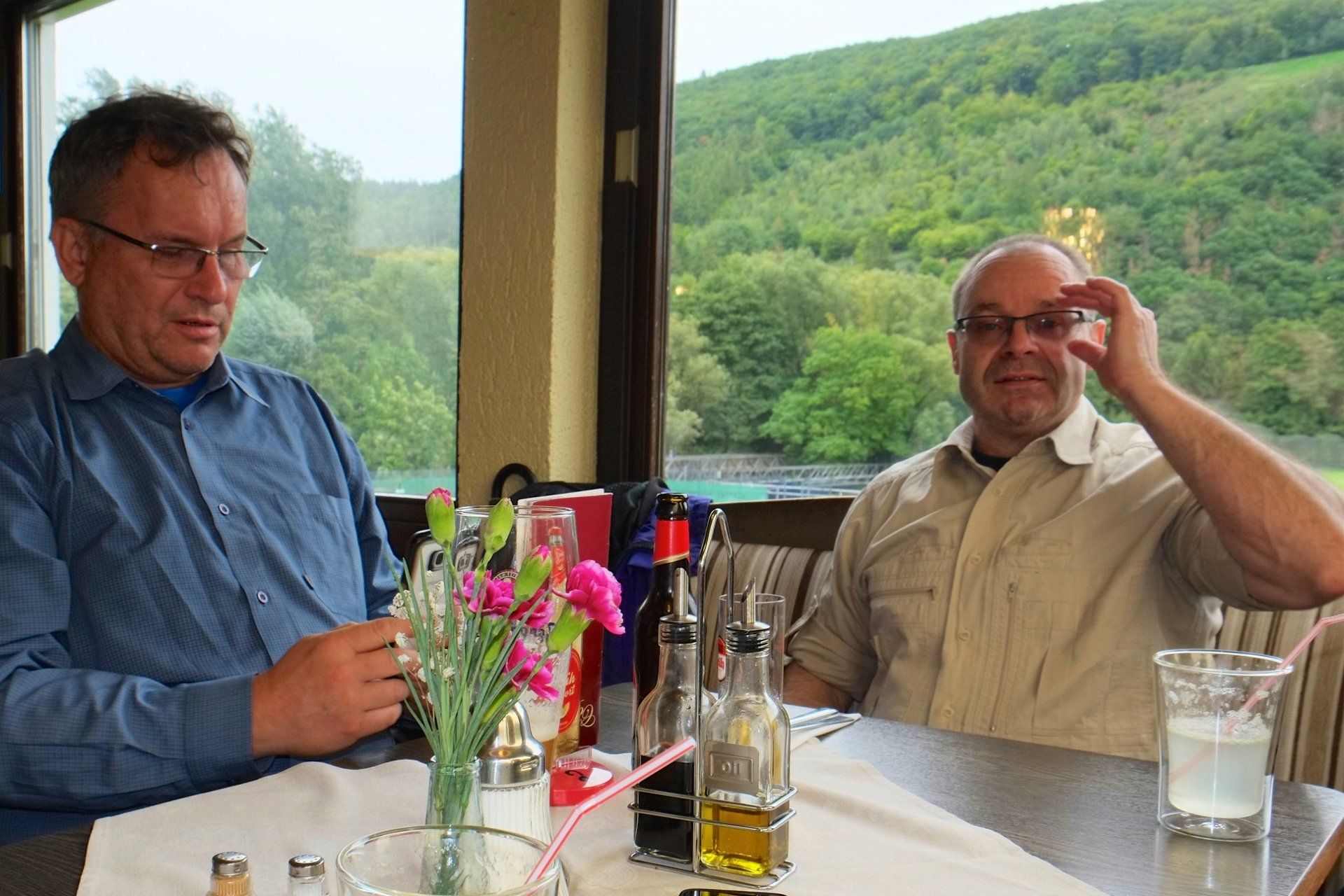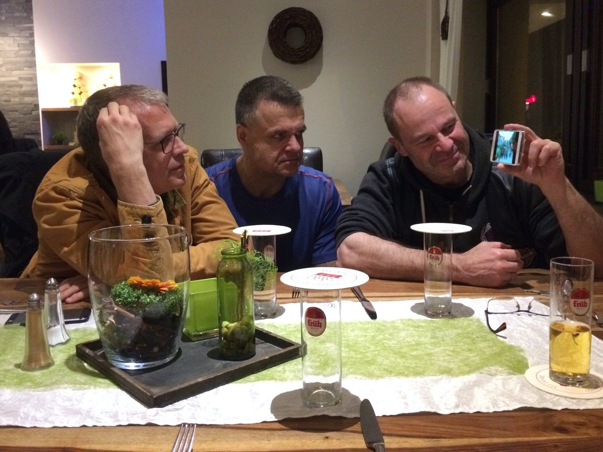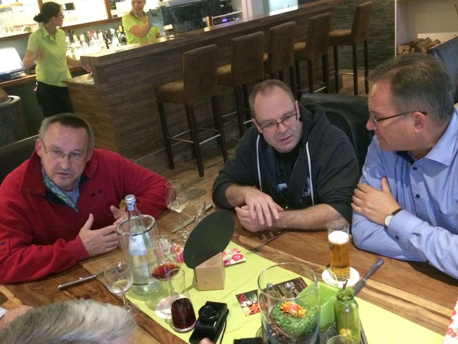 Café Flink! Nach der Rückkehr (keine Verluste!) gab's Gelegenheit für ein tourminatorgerechtes Schläfchen. Abends fröhliche Runde im Hotel Haus Seeblick in Schmidt.