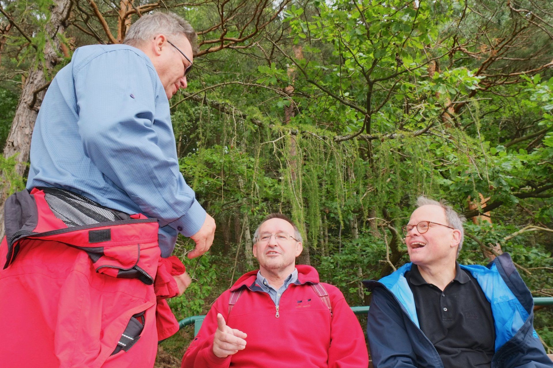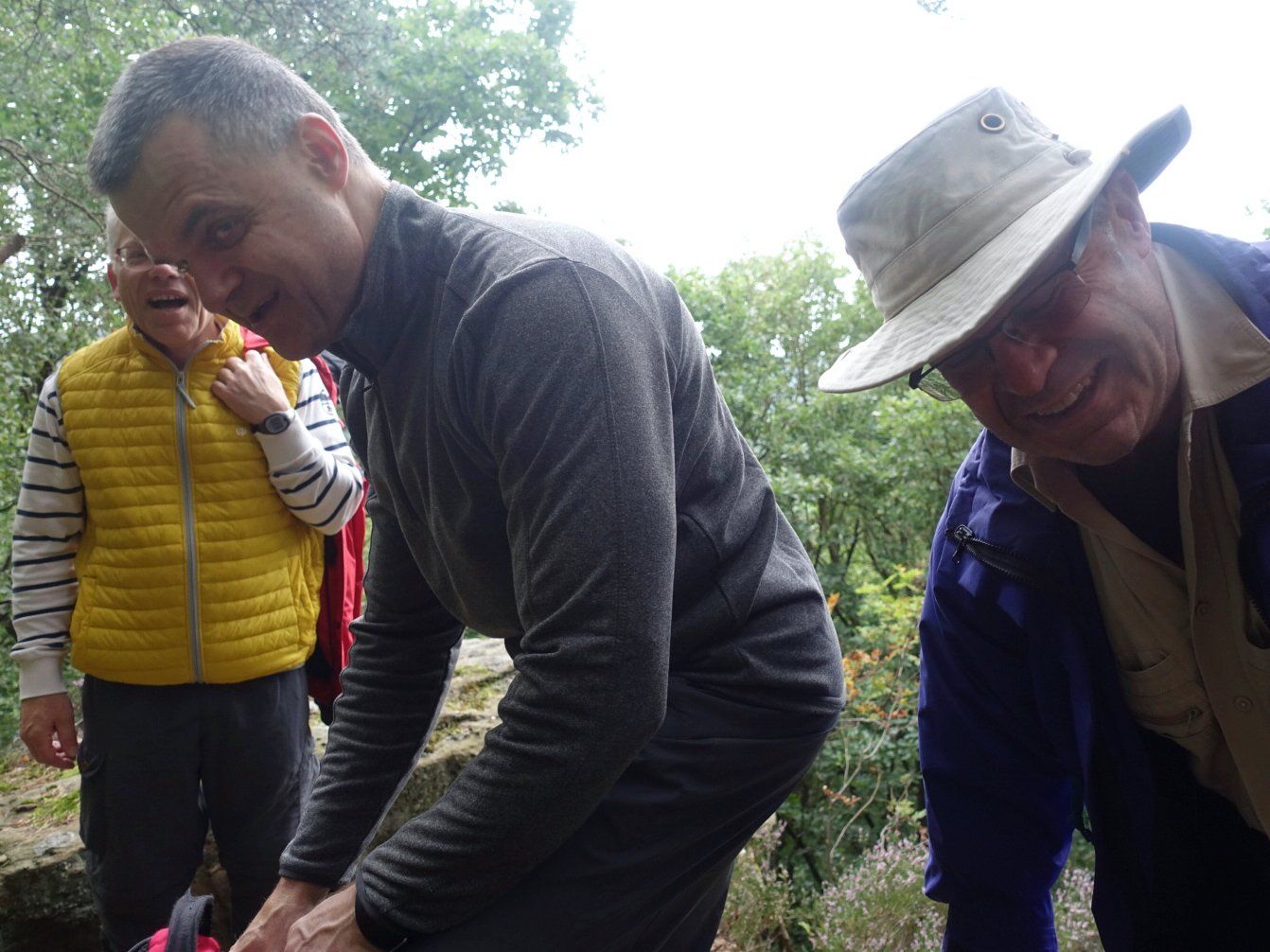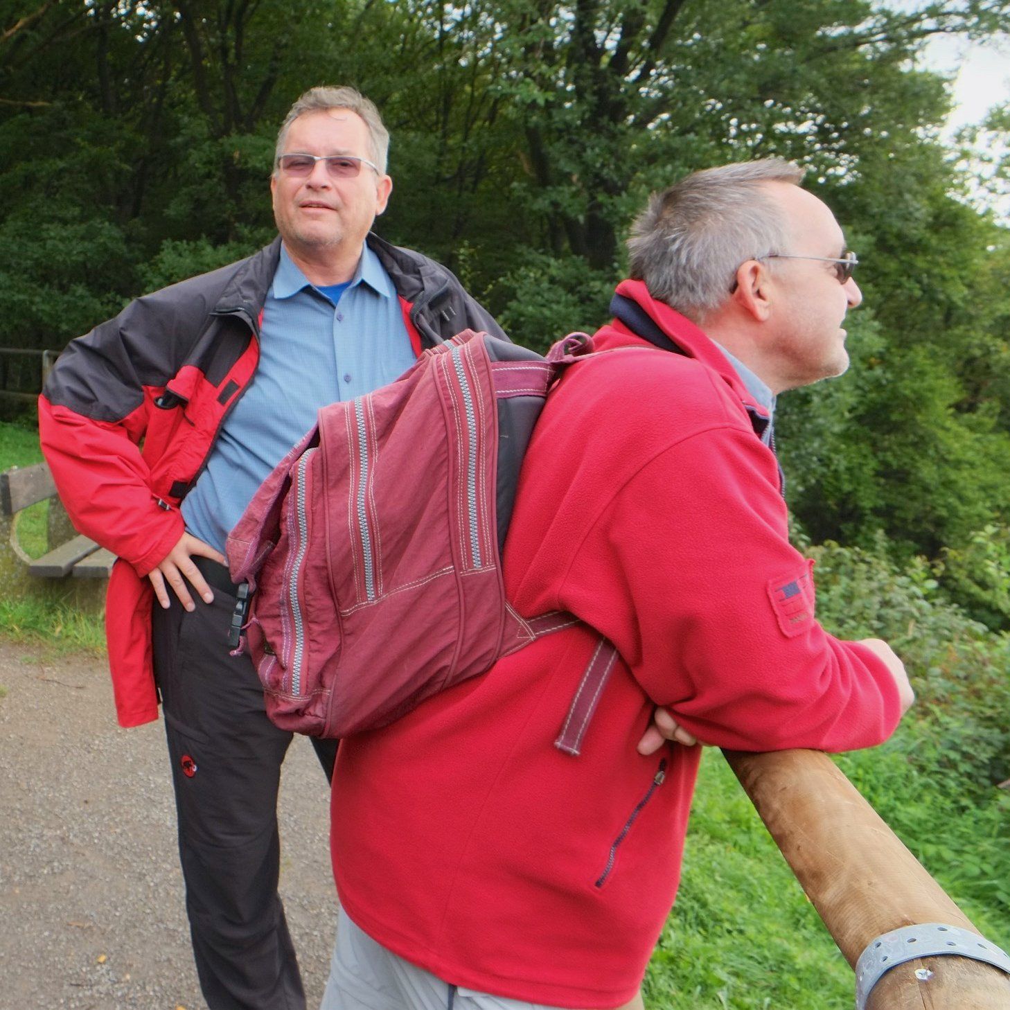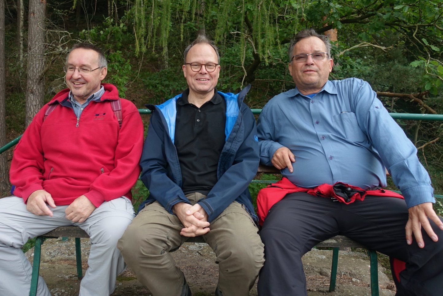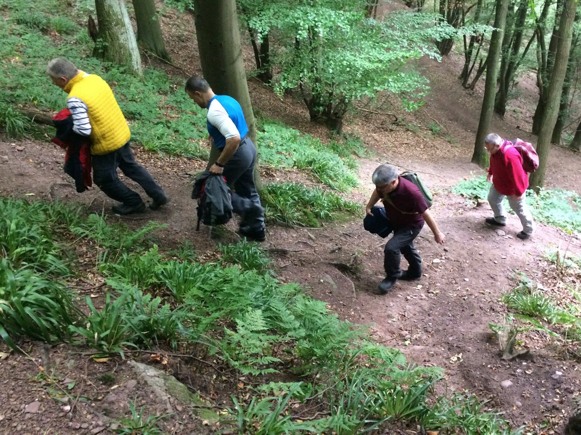 Gleich nach dem ersten Frühstück stand für die Herrenwanderer eine ebenso lehrreiche, wie beeindruckende Wanderung auf dem Programm – die imposante Felspassage! Sie führte unterhalb der Buntsandsteinfelsen zwischen Obermaubach und Nideggen am Rurtal entlang. Stellenweise ging es steil bergauf, Klettersicherheit war gefragt. Aus dem Buntsandstein entstanden übrigens einst die Burg Nideggen sowie weitere Gebäude der Region! Aber auch Mühlsteine hat man aus dem Fels geschlagen. Heute wird hier nur noch gewandert – und das ist gut so. Gut gelaunte Mittagsrast im