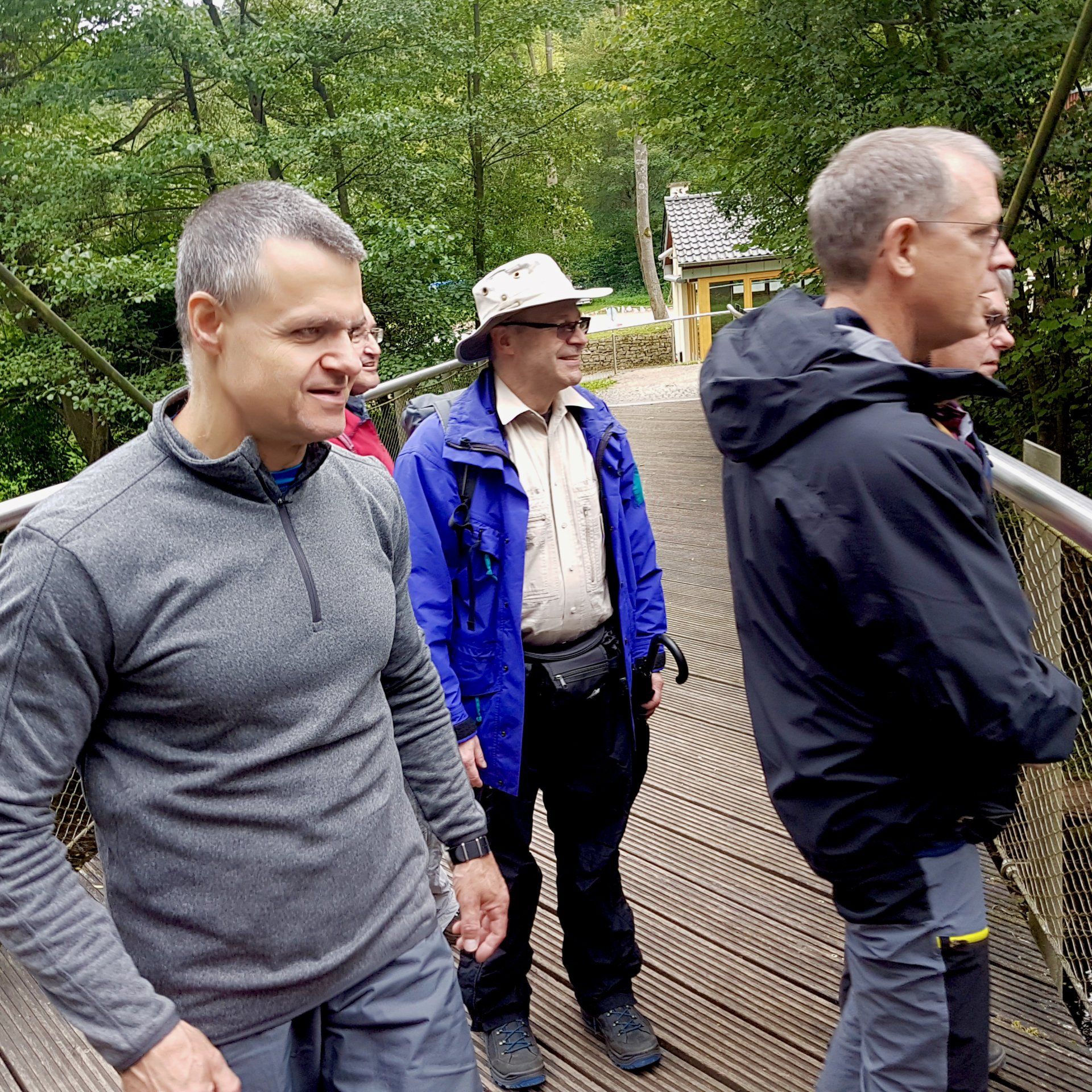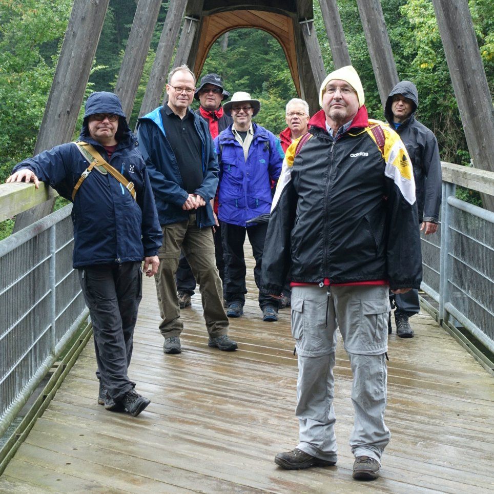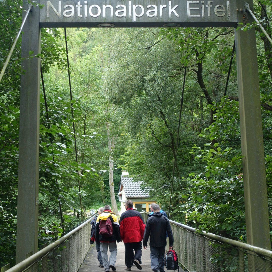 Noch nie startete eine Herrenwanderung so früh im Jahr wie anno 2017: Unter dem Motto „Eife(e)l good“ entführte Tourminator Joe die Truppe vom 7. bis 10. September 2017 in den urigen Nationalpark Eifel, genauer: in das Örtchen Schmidt (nicht verwandt mit dem ehemaligen Lehrer am Max-Planck-Gymnasium). Weil Dr. Schoko offenbar dringend eine Auszeit benötigte, verbrachten lediglich acht, dafür umso unerschrockenere Teilnehmer drei intensive, teils sehr diskussionsreiche gemeinsame Abende und absolvierten quasi nebenbei zwei bemerkenswerte Wanderungen durch die raue, aber reizvolle Landschaft in den oberen Eifelregionen. Eine Tour, die keiner so schnell vergessen wird!