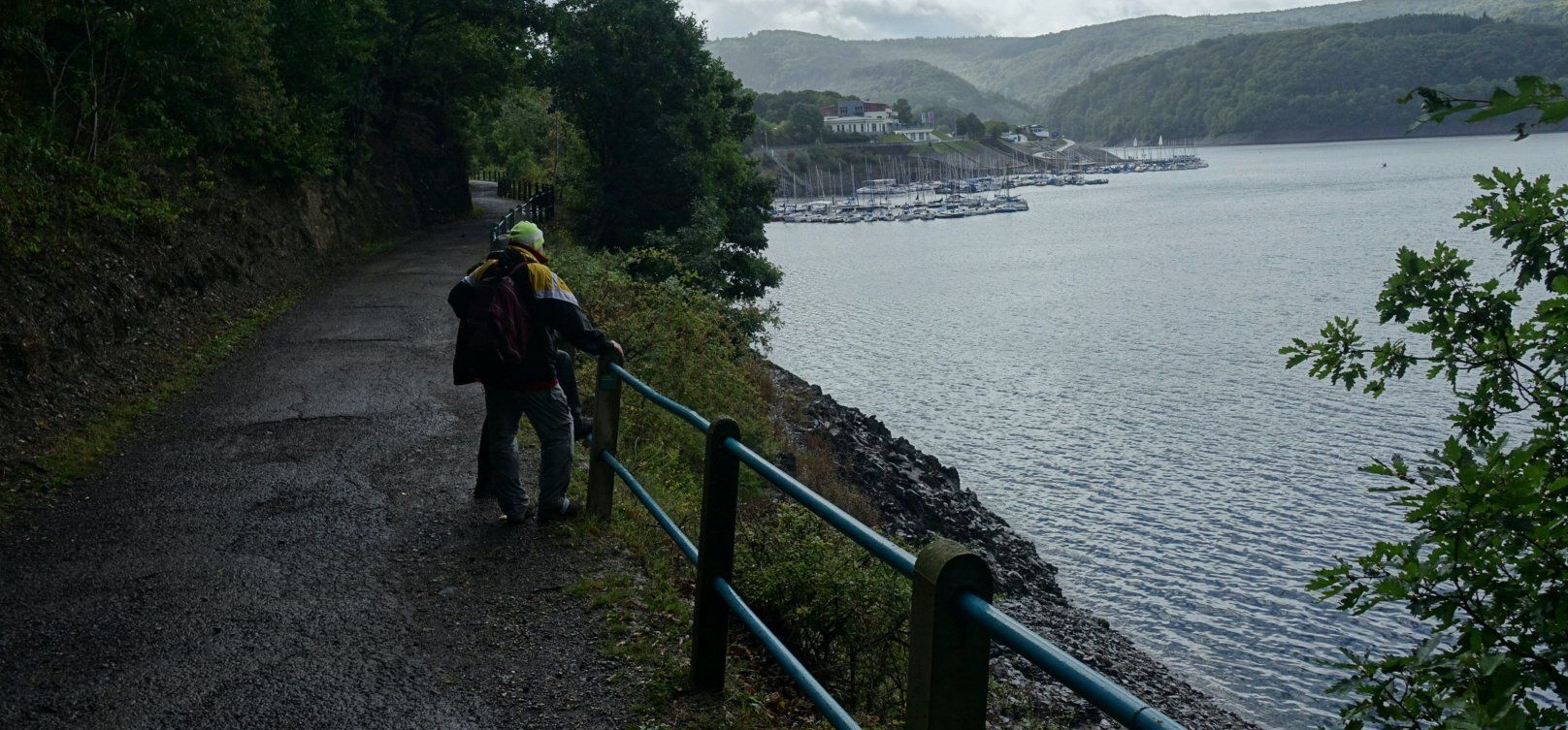 Am Samstag konnten die Herrenwanderer den Rursee und damit eine der größten Talsperren Deutschlands in seiner vollen Schönheit bewundern. Die stark bewaldeten Hänge rund um den See sowie die Tatsache, dass unmittelbar am Ufer keine öffentlichen Straßen entlang führen, gaben viel Spielraum, um die Landschaft „in aller Ruhe“ zu erleben. Normalerweise ist der See im Frühling beinahe bis zum Rand gefüllt. Über den Sommer hinweg entleert er sich allmählich, wodurch buchstäblich eine Steilküste zum Vorschein kommt, die diesem Wanderweg seinen Namen gibt. Rast mit Blick auf den See im Restaurant & Café am Pegel, danach Abmarsch zurück nach Schmidt, wo am Abend im Tourquartier „Hotel Roeb – Zum alten Fritz“ nochmal kräftig Kölsch gezecht wurde.