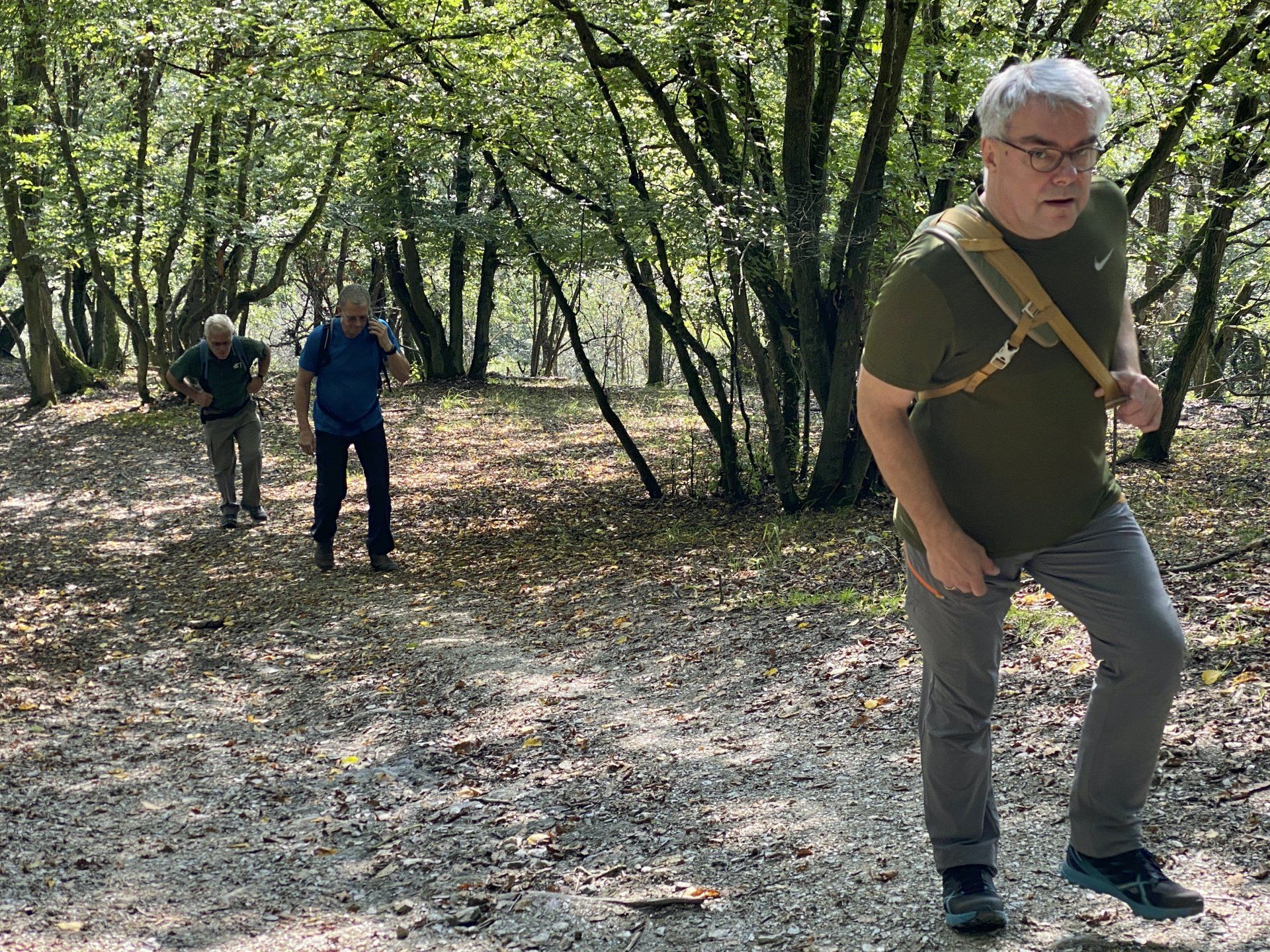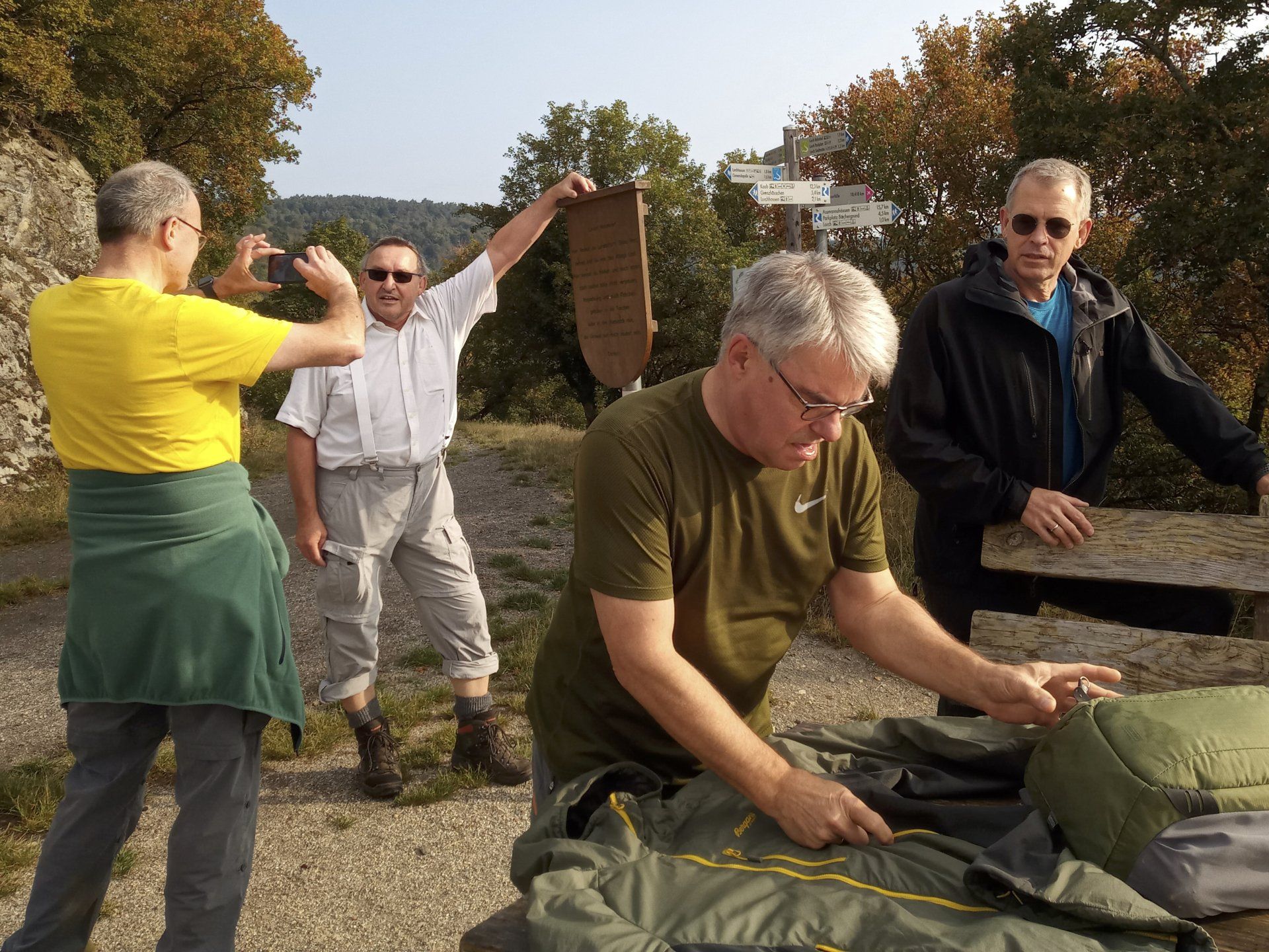Alles hat ein Ende – nur der Wurm hat zwei. An diesem alten Sprichwort kommt keiner vorbei, auch kein Herrenwanderer: Nach Frühstück und Gruppenbild setzten die unweigerlichen Auflösungserscheinungen ein. Aber auch ein bisschen Vorfreude war schon spürbar, denn: Nach der Wanderung ist vor der Wanderung. Alle sind schon jetzt gespannt, was sich der Tourmaster des Jahres 2022, der mittlerweile zu erstaunlicher Gesprächsfähigkeit gereifte Wiedehopf, einfallen lassen wird. Spätestens im nächsten Jahr werden wir’s wissen, wenn eine weitere Fortsetzung der Herrenwanderer-Saga folgt!