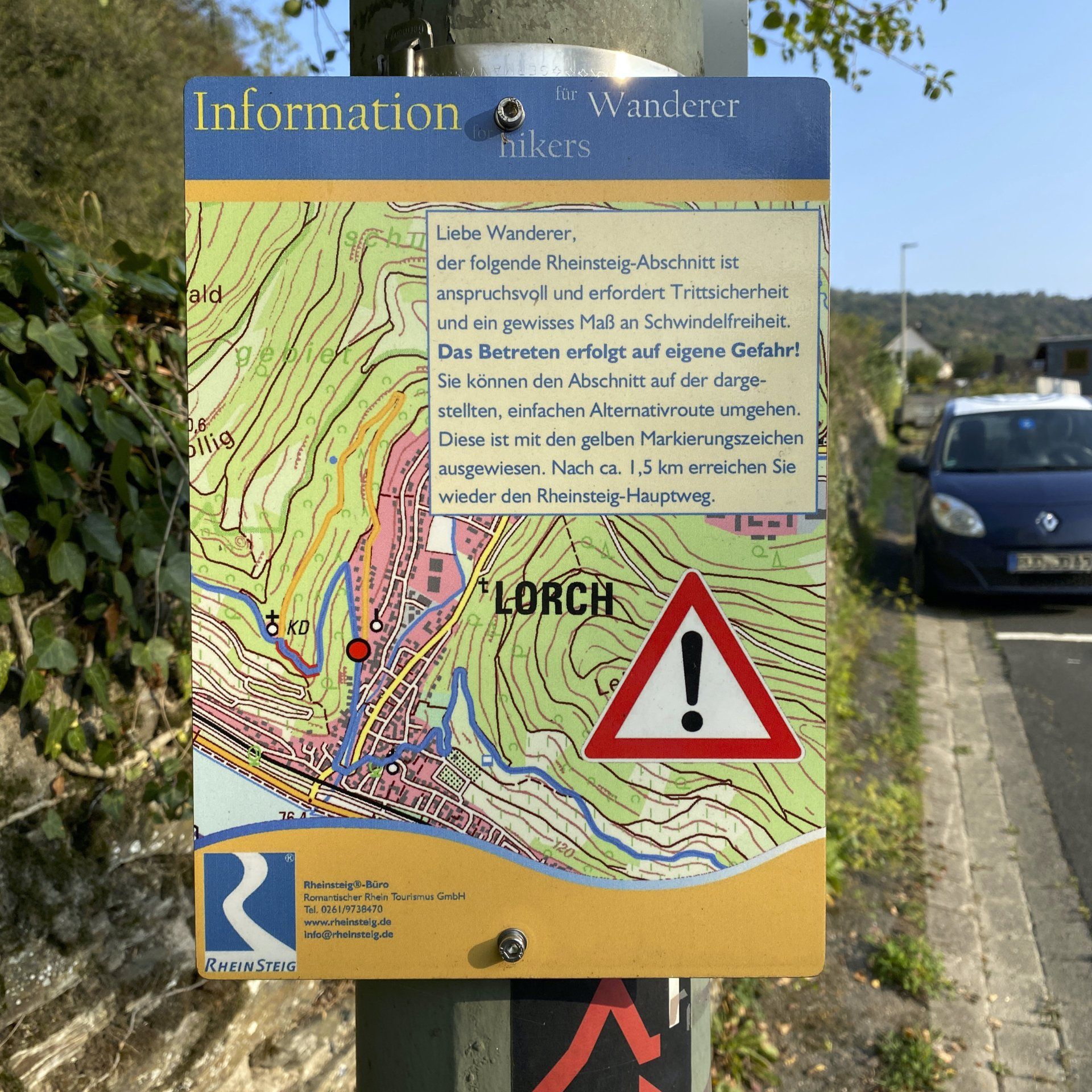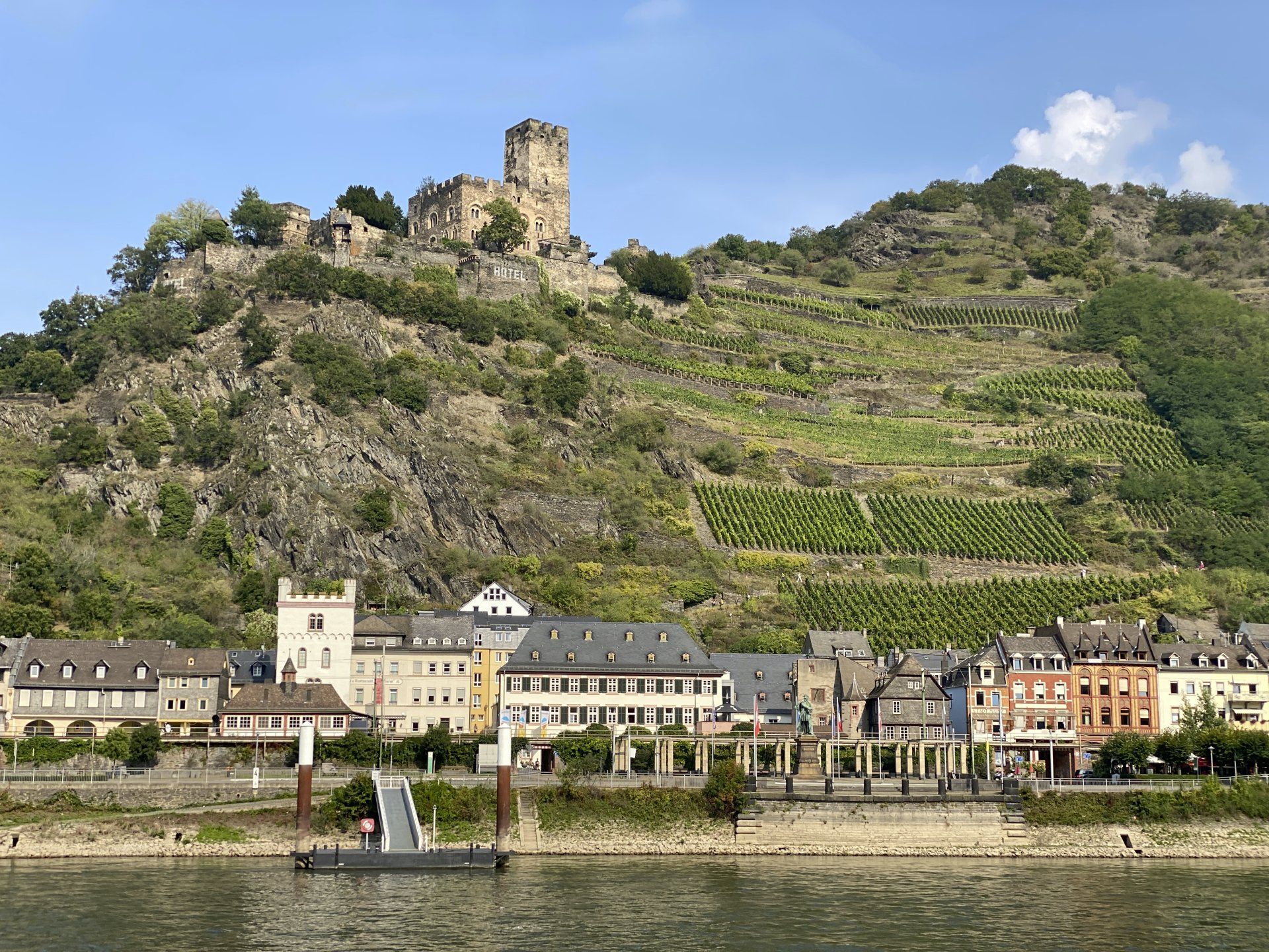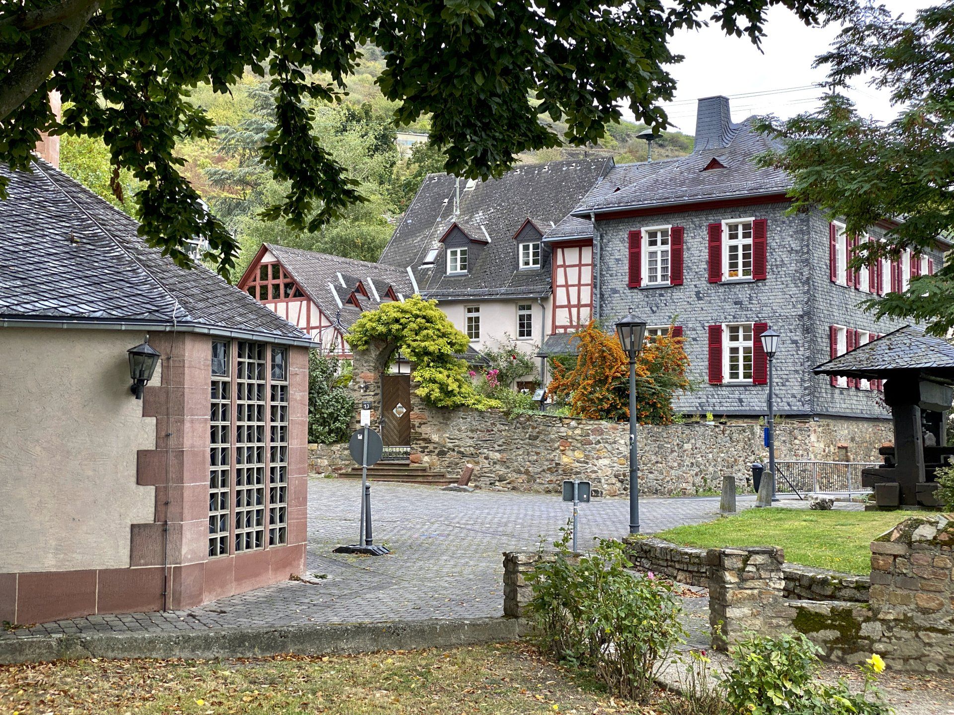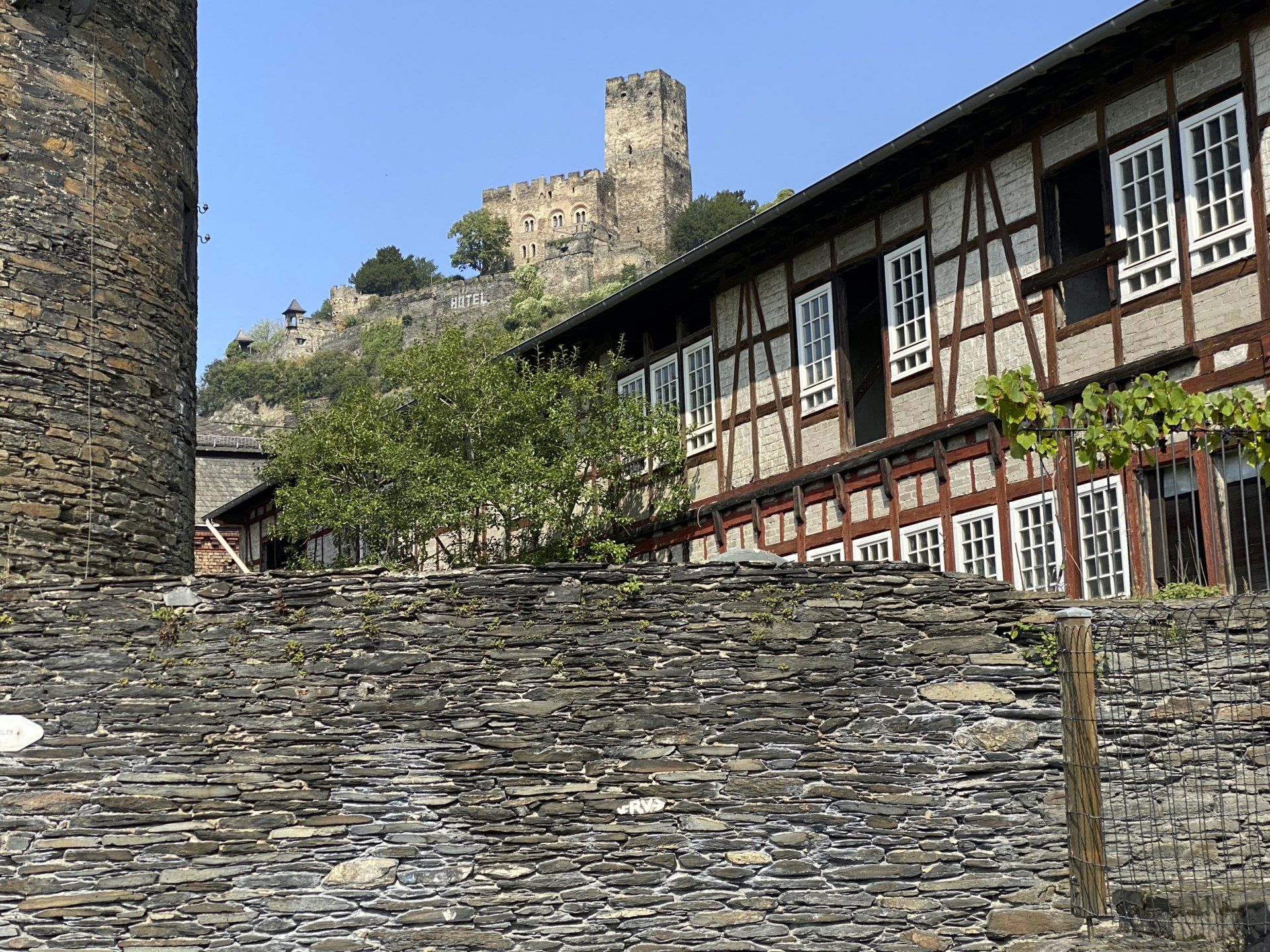 eine Wanderung auf dem Rheinsteig von Lorch nach Kaub. Los ging’s direkt vom „Hotel im Schulhaus“ aus, völlig unerschrocken übrigens, trotz Warnhinweisen, die darauf aufmerksam machten, dass der Weg anspruchsvoll sei und Trittsicherheit sowie Schwindelfreiheit erfordere. Letzteres war nach dem Exzess des vergangenen Abends sowieso nicht zu garantieren. Nach wenigen hundert Metern ging’s stramm bergauf, die Waden schmerzten, die Lungen keuchten – es war herrlich … zumal die Sonne schon bald den Nebel vertrieb und wunderbare Aussichten auf das Rheintal freigab. Die Szenerie wirkte wie gemalt – fast zu schön, um wahr zu sein. Ein Zwischenstopp war diesmal beim