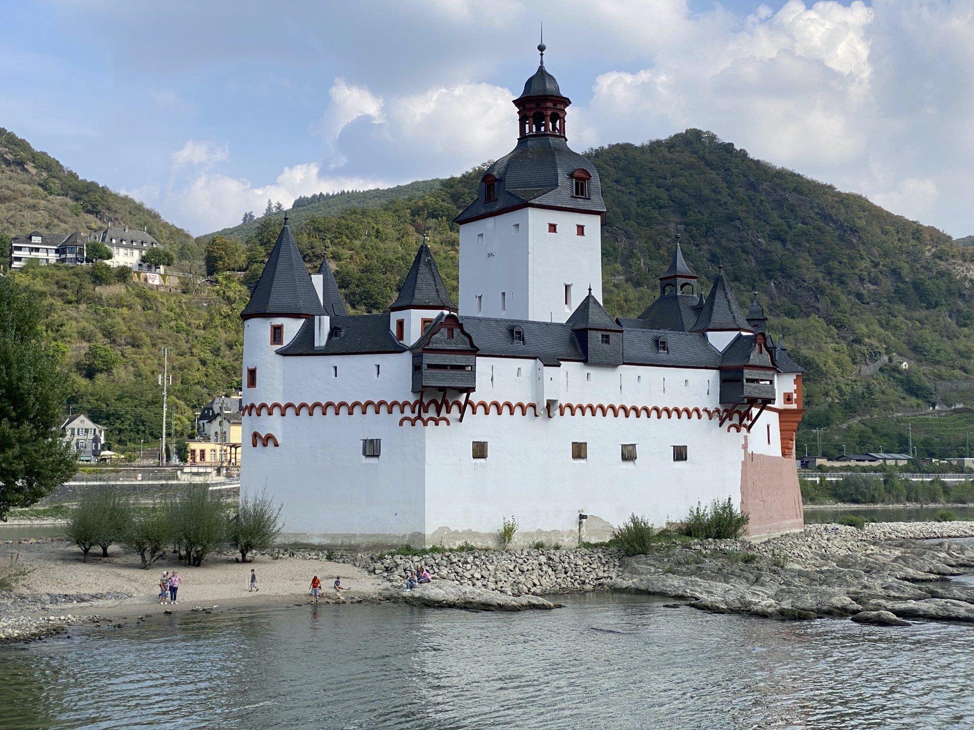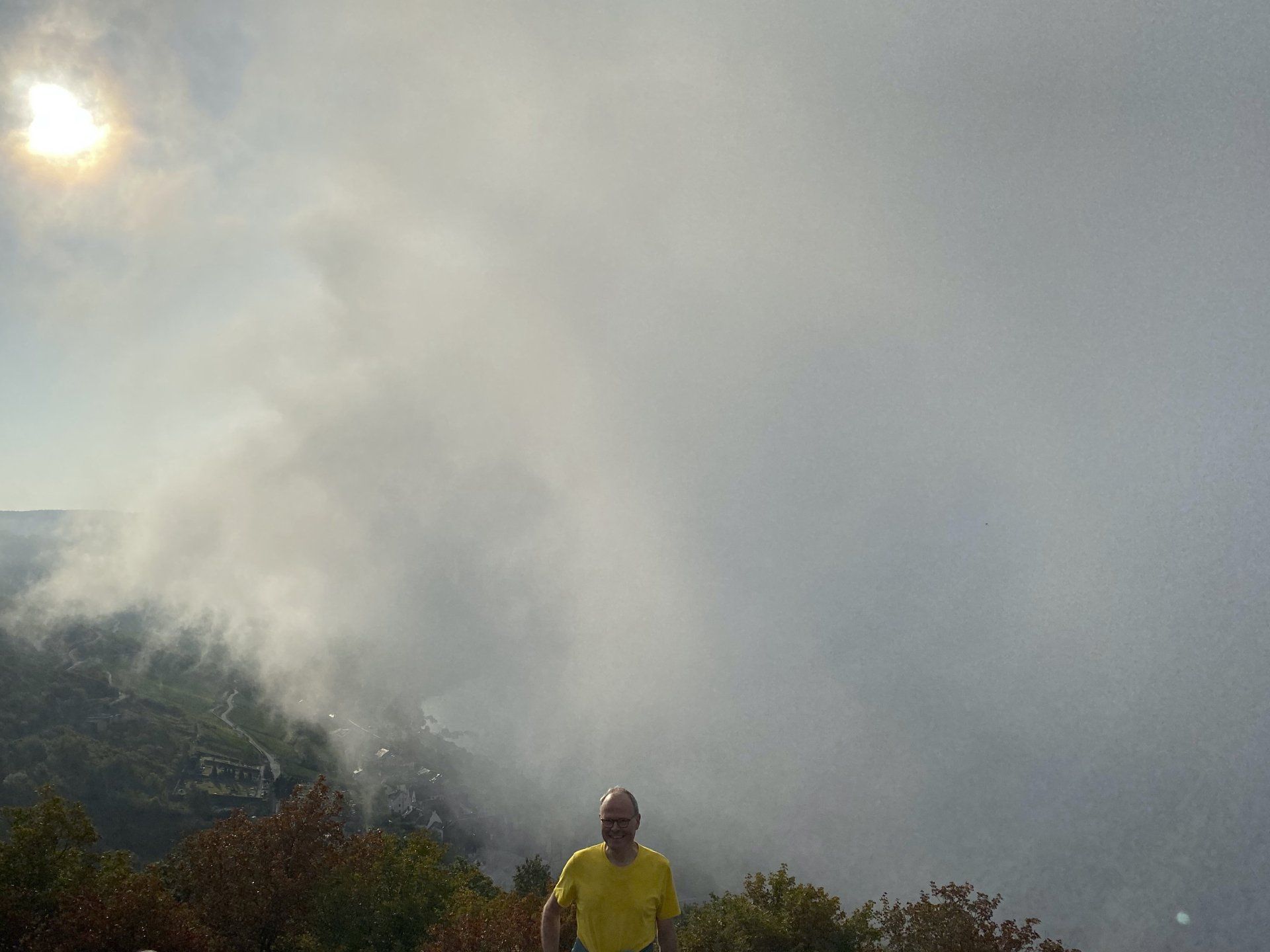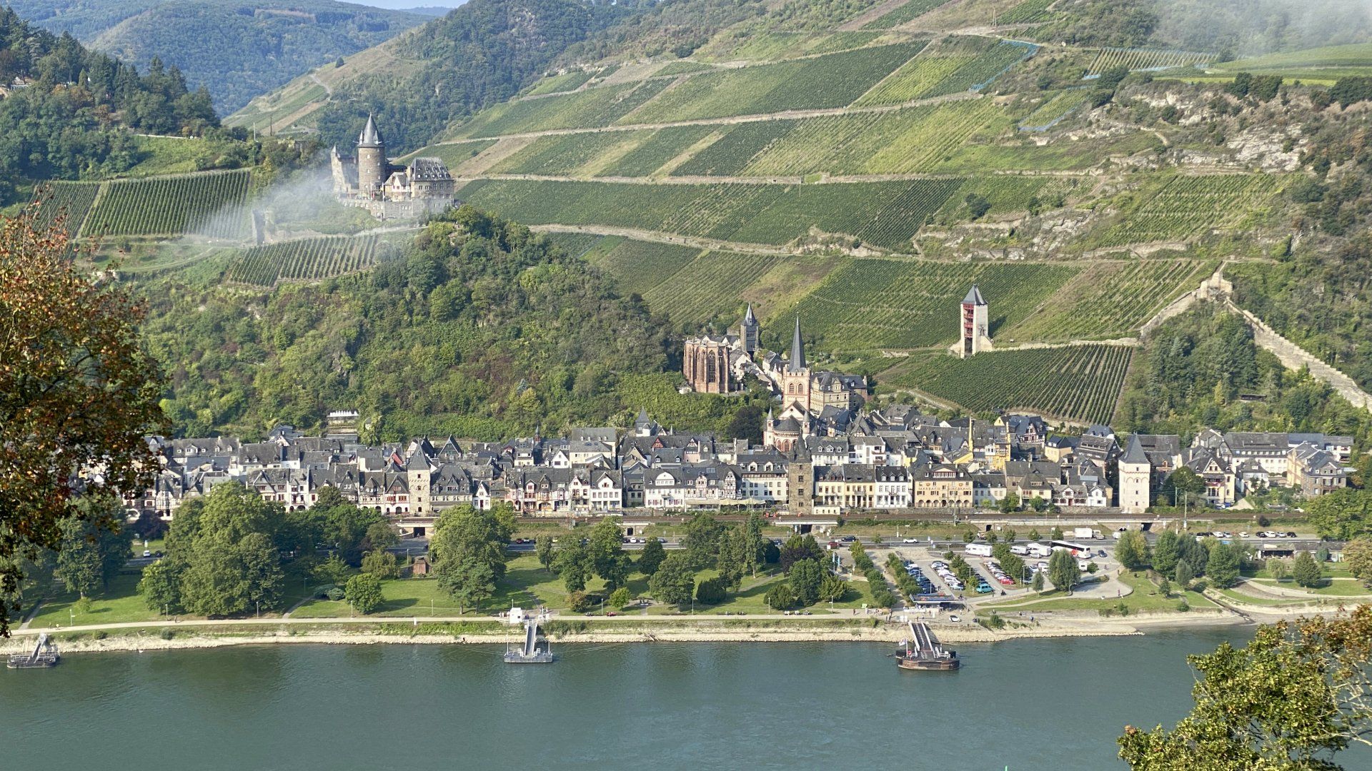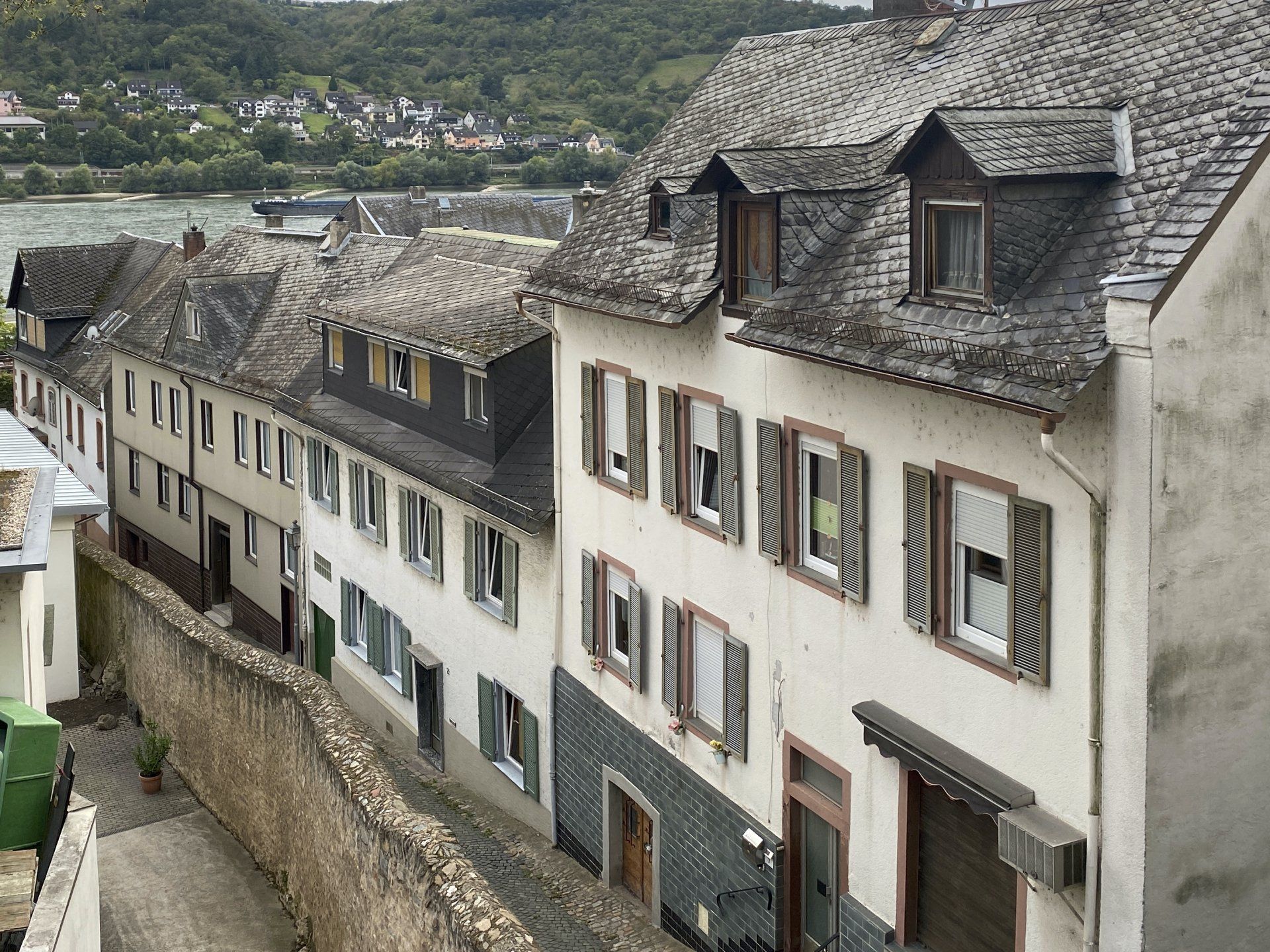eine Wanderung auf dem Rheinsteig von Lorch nach Kaub. Los ging’s direkt vom „Hotel im Schulhaus“ aus, völlig unerschrocken übrigens, trotz Warnhinweisen, die darauf aufmerksam machten, dass der Weg anspruchsvoll sei und Trittsicherheit sowie Schwindelfreiheit erfordere. Letzteres war nach dem Exzess des vergangenen Abends sowieso nicht zu garantieren. Nach wenigen hundert Metern ging’s stramm bergauf, die Waden schmerzten, die Lungen keuchten – es war herrlich … zumal die Sonne schon bald den Nebel vertrieb und wunderbare Aussichten auf das Rheintal freigab. Die Szenerie wirkte wie gemalt – fast zu schön, um wahr zu sein. Ein Zwischenstopp war diesmal beim