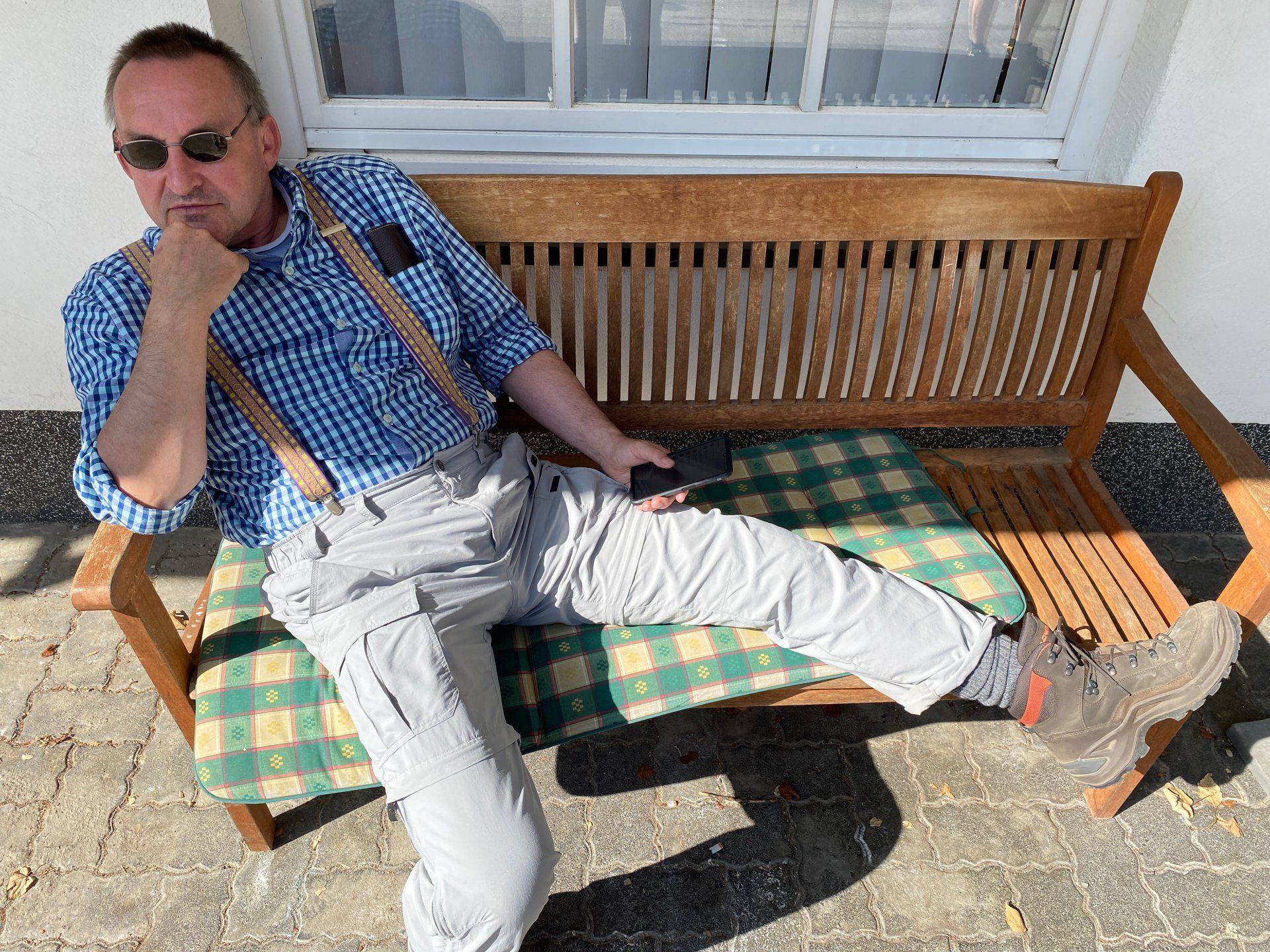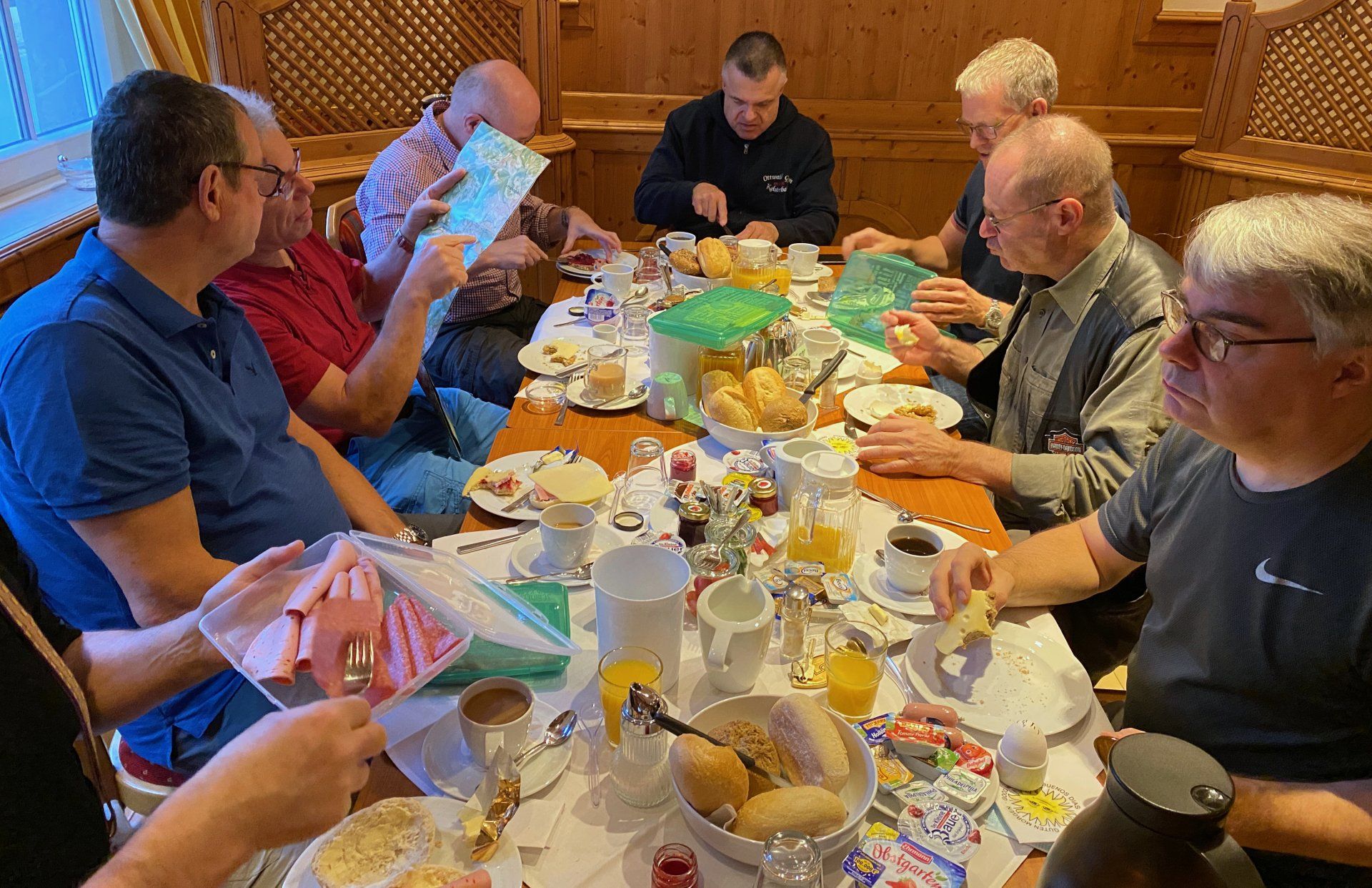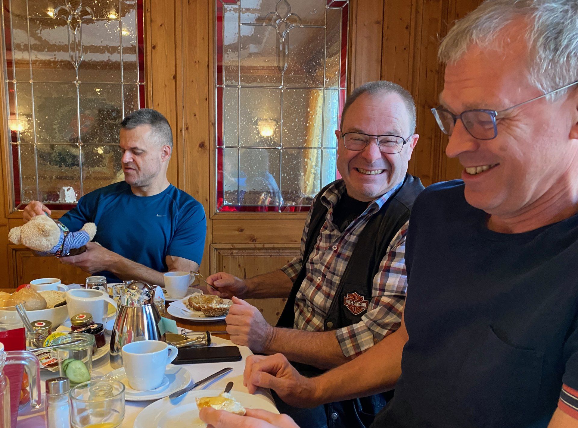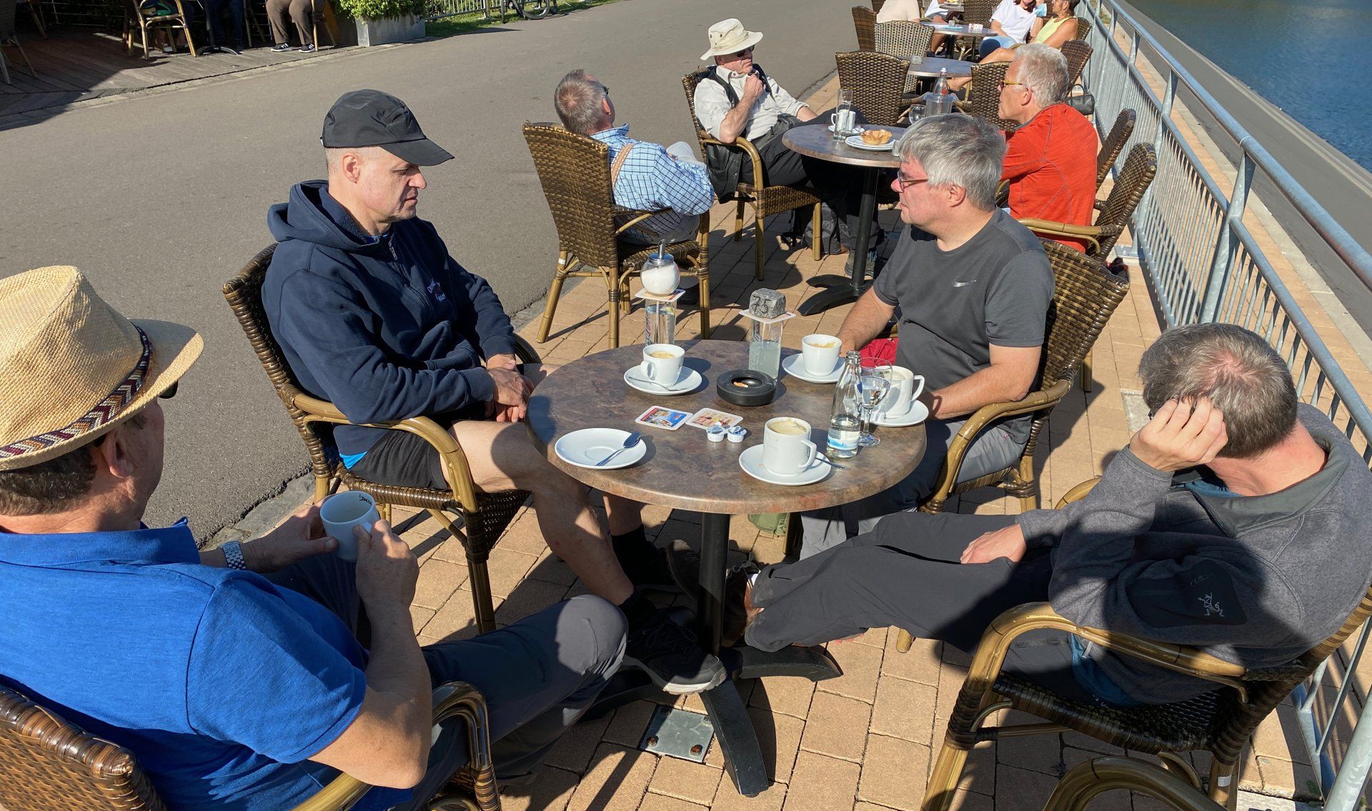 „Steakhaus Schürholz“, direkt gegenüber von unserem Quartier, wo er die bereits eine Dreiviertelstunde „warmgelaufene“ Truppe schon bald lautstark parlierend in seinen Bann zog. Neben einer fundierten Analyse des Corona-Geschehens ging es um Familienangelegenheiten, kennerhaft beurteilte Rotweine sowie um eine nach wie vor beliebte nachmittägliche Freizeitbeschäftigung des Hüters von Recht und Ordnung. Immerhin: Auch andere in der Runde kamen dann und wann zu Wort. Zu ziviler Zeit endete der erste Abend – ohne größeres Tamtam.
