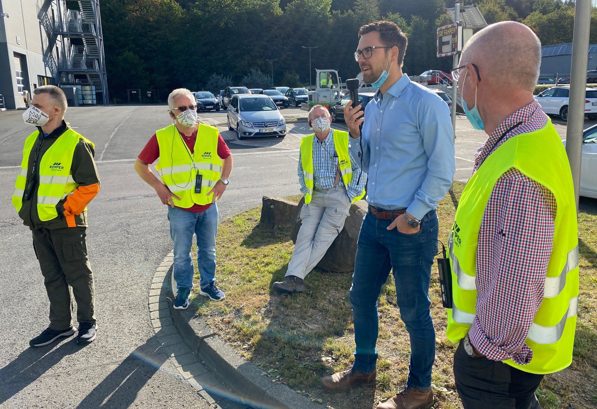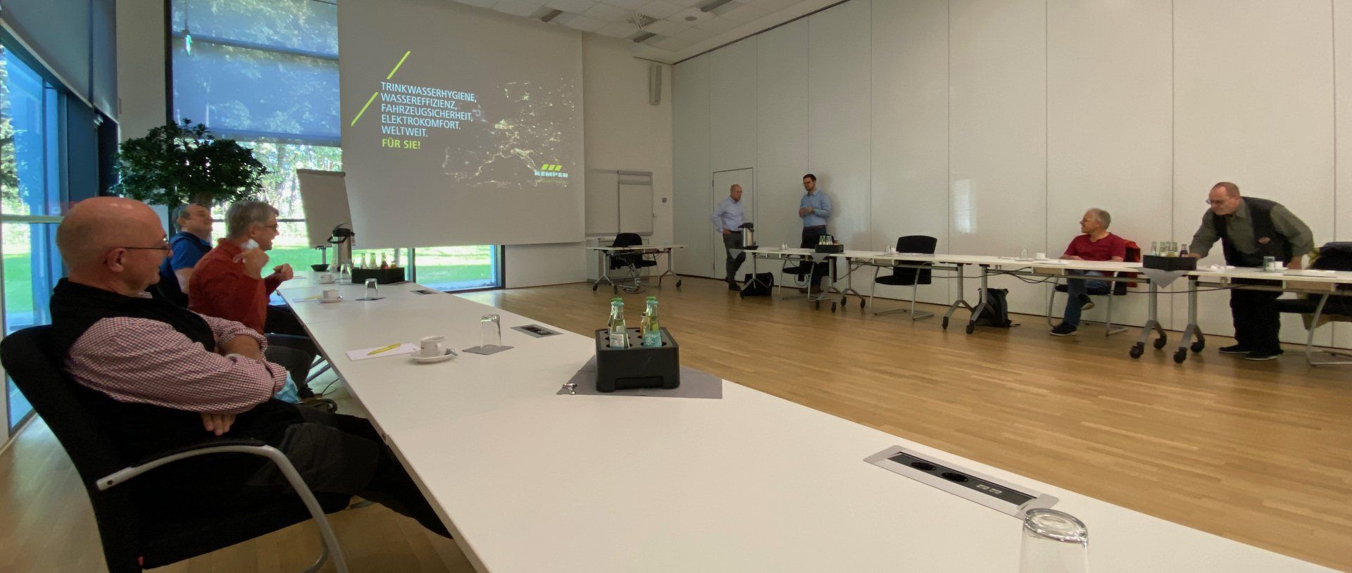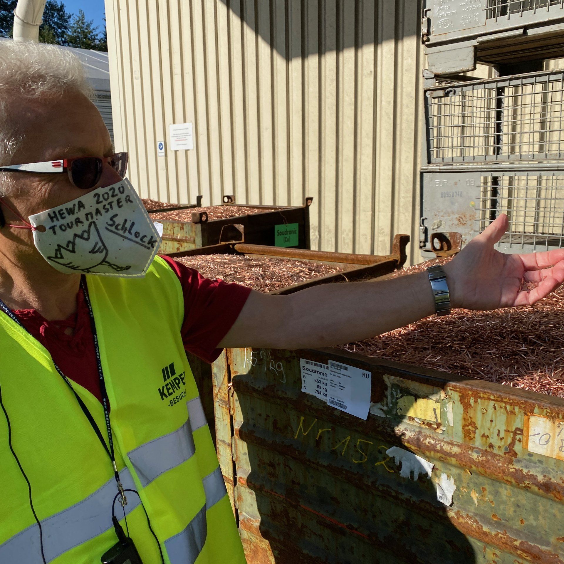 „Kemper“ im nahe gelegenen Olpe auf, wo man die Produktion von Kupfer- und Legierungsbändern für die Automobil- und Elektrobranche interessiert unter die Lupe nahm. Eingefädelt hatte das Spektakel unser gewiefter Tourmaster Schlock, indem er Beziehungen aus seiner aktiven Berufszeit zu einem gewissen Stephan Hansmann geschickt reaktivierte und zum Wohle der Wanderer nutzte. Diese staunten nicht schlecht, wie viele Arbeitsschritte notwendig sind, damit schließlich ein dünnes Kupferband entsteht, aus dem dann Kontakte für Steckverbinder (möglicherweise auch für Bananenstecker!) herausgestanzt werden. Unglaublich auch der Wert von Zinkblöcken, die reihenweise aufgestapelt im Eingang des Werks herumstanden: Angeblich kostet einer so viel wie ein Einfamilienhaus. Beeindruckt schlurften die Herren unter der fachkundigen Führung von Hansmann & Co. in zwei Gruppen durch die Hallen, ehe man schließlich gegen Mittag in Richtung