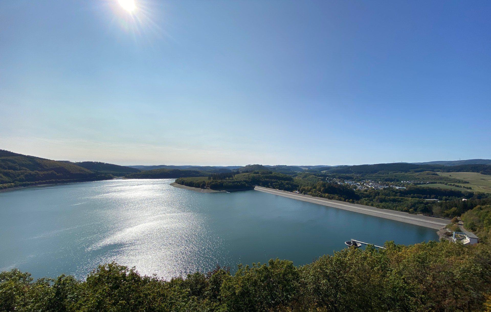 Listertalsperre, die eine Art Vorbecken des Biggesees bildet. Mittags Einkehr im