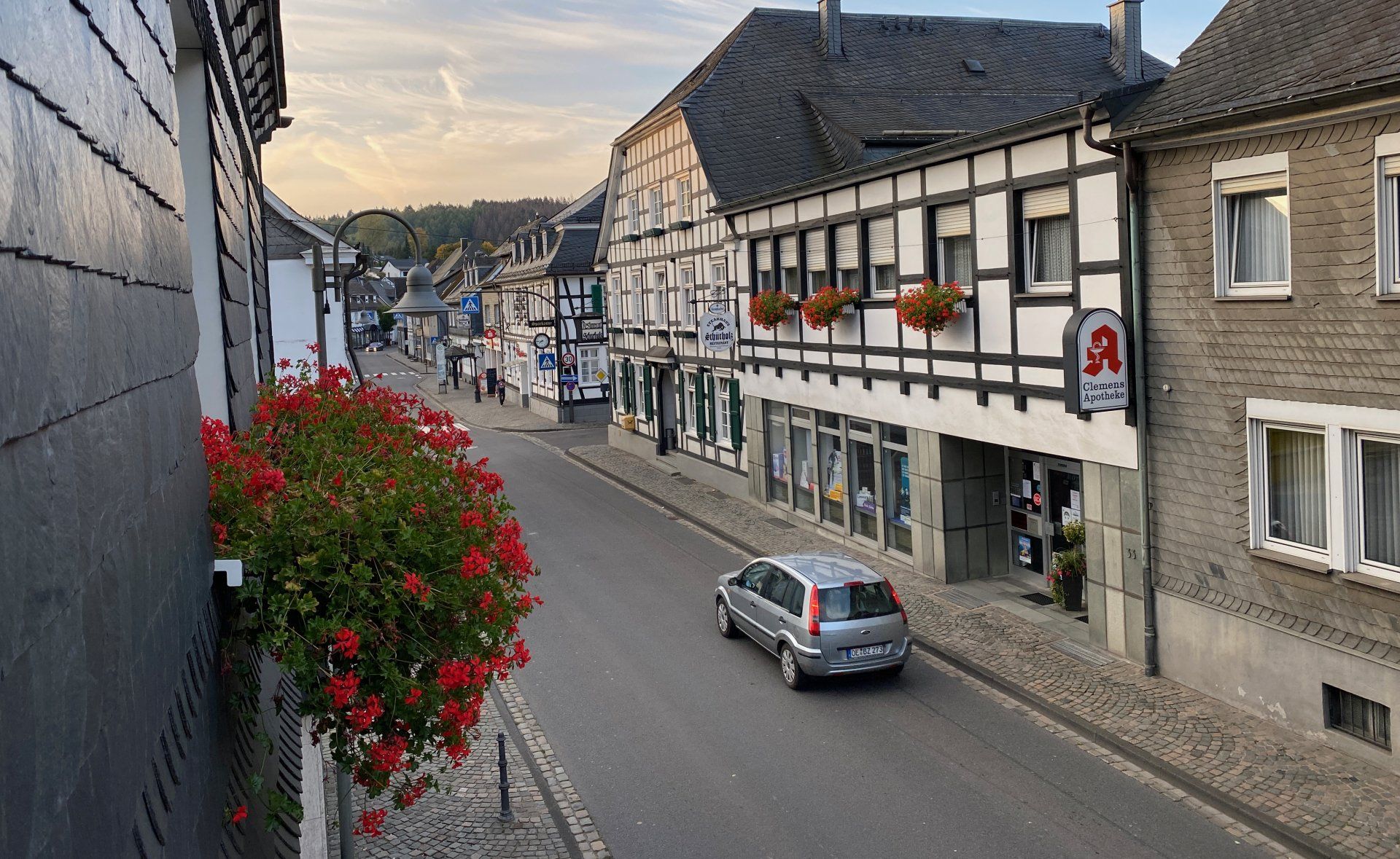 Dann ging’s los gen Drolshagen, in besagtem VW Multivan sowie Schlocks güldenem bajuwarischem Mobil. Knapp zwei Stunden später, gegen 17 Uhr, konnten die Zimmer in der